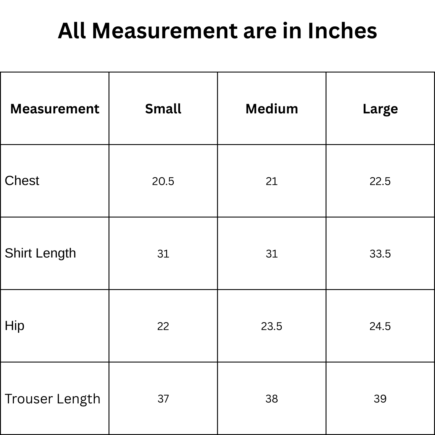 Size Chart & Fit